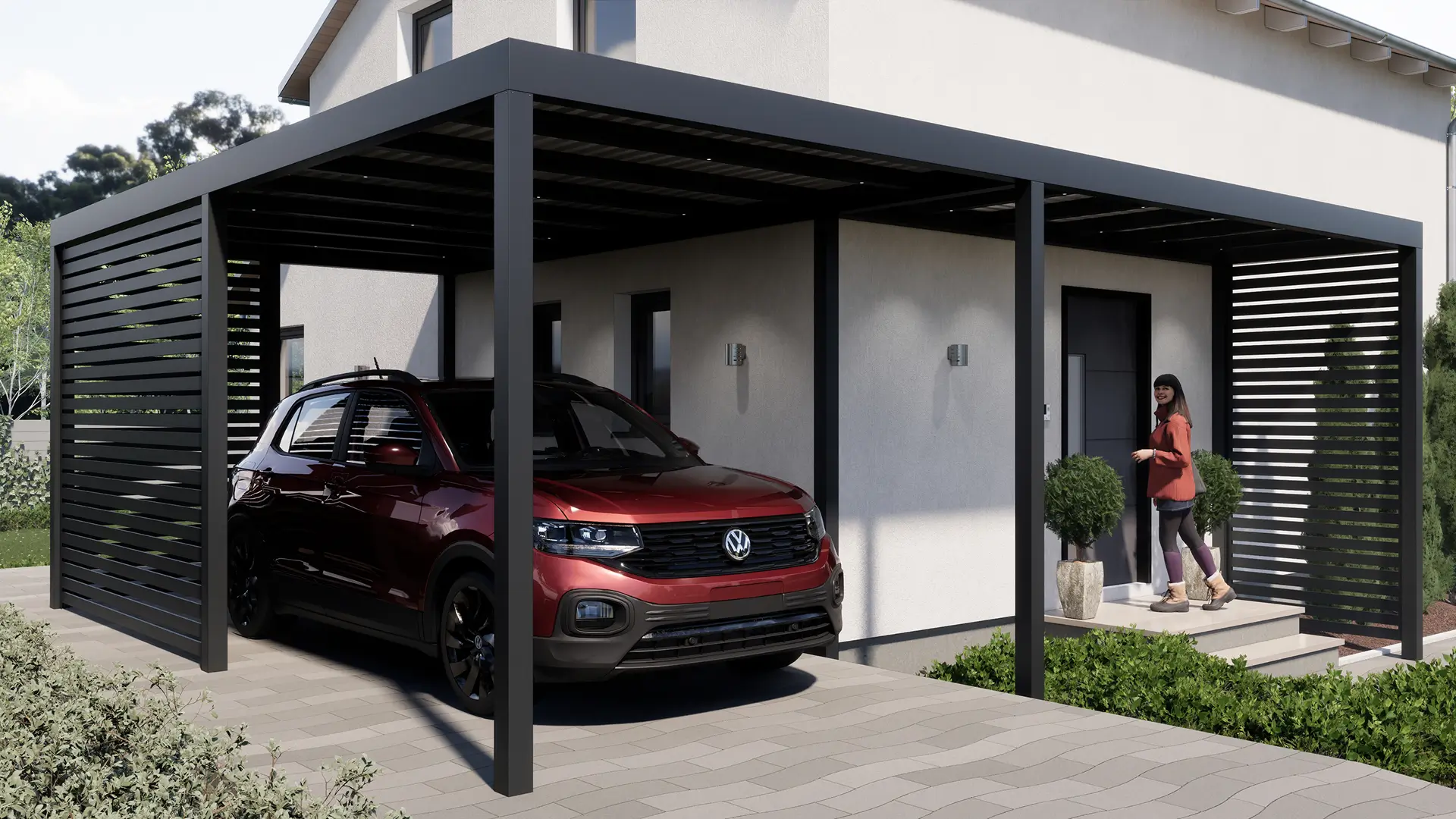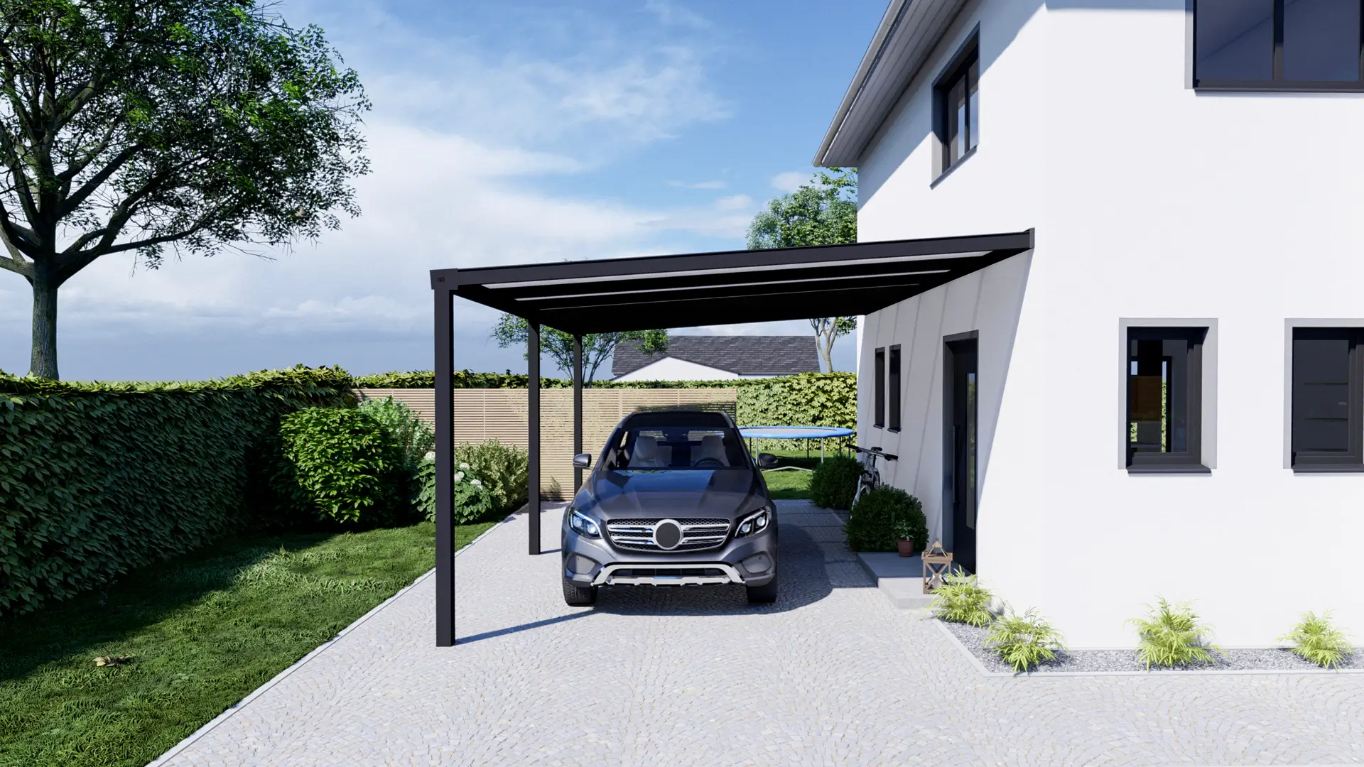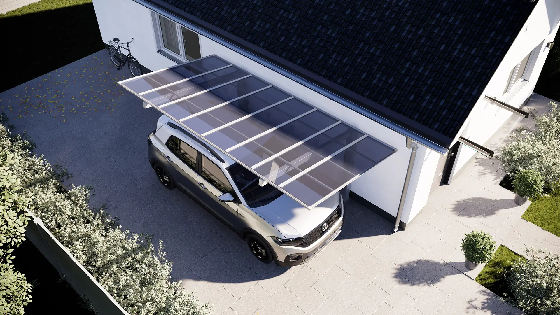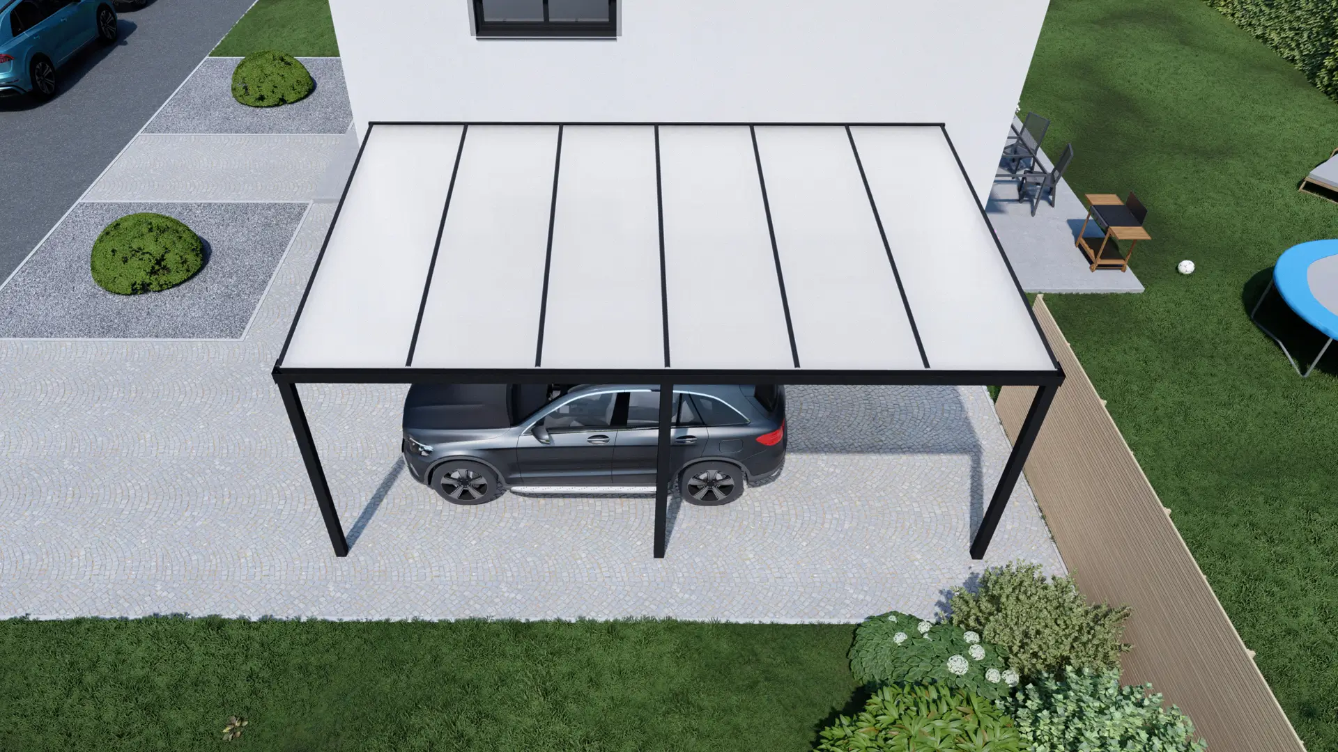 Protecție optimă pentru tine și mașina ta. Un KD Carport Alpha te ferește de ploaie și intemperii, cu opțiune de montaj independent sau pe perete.
