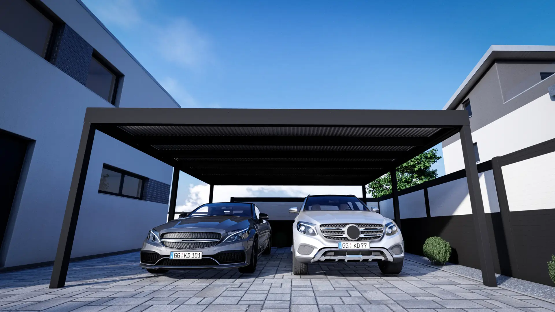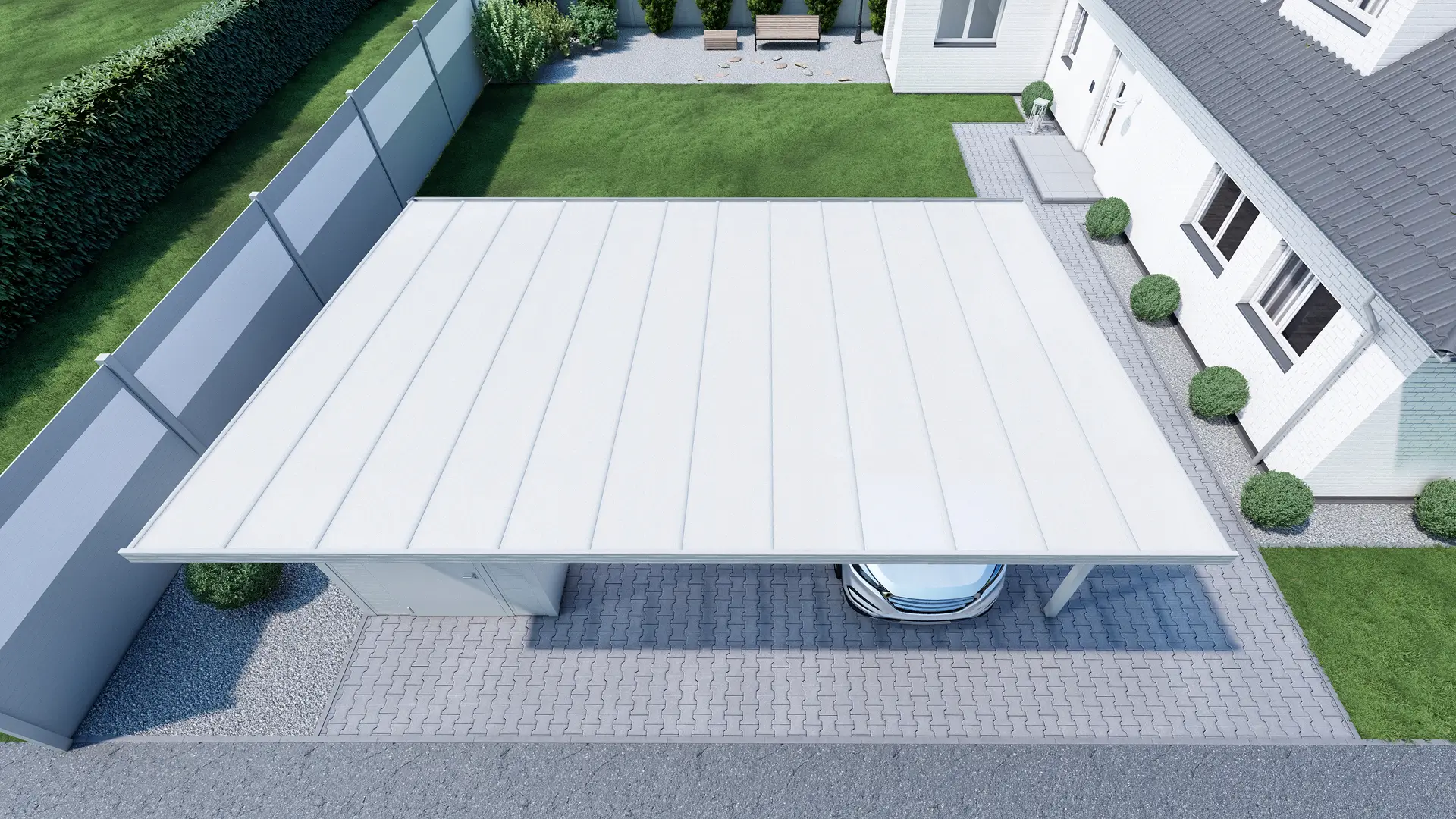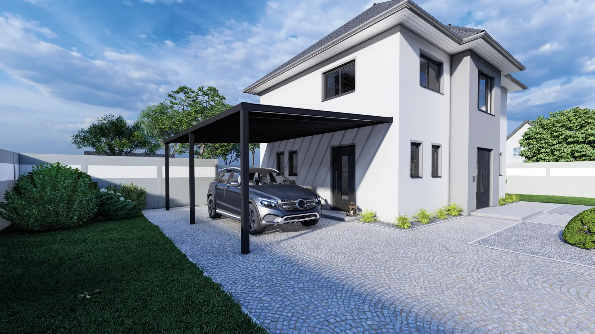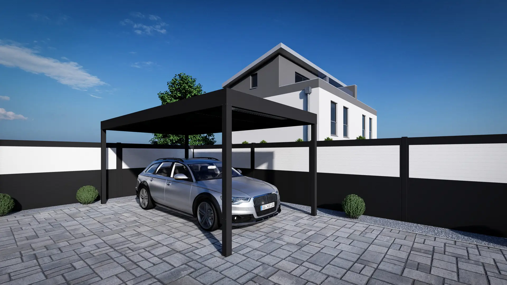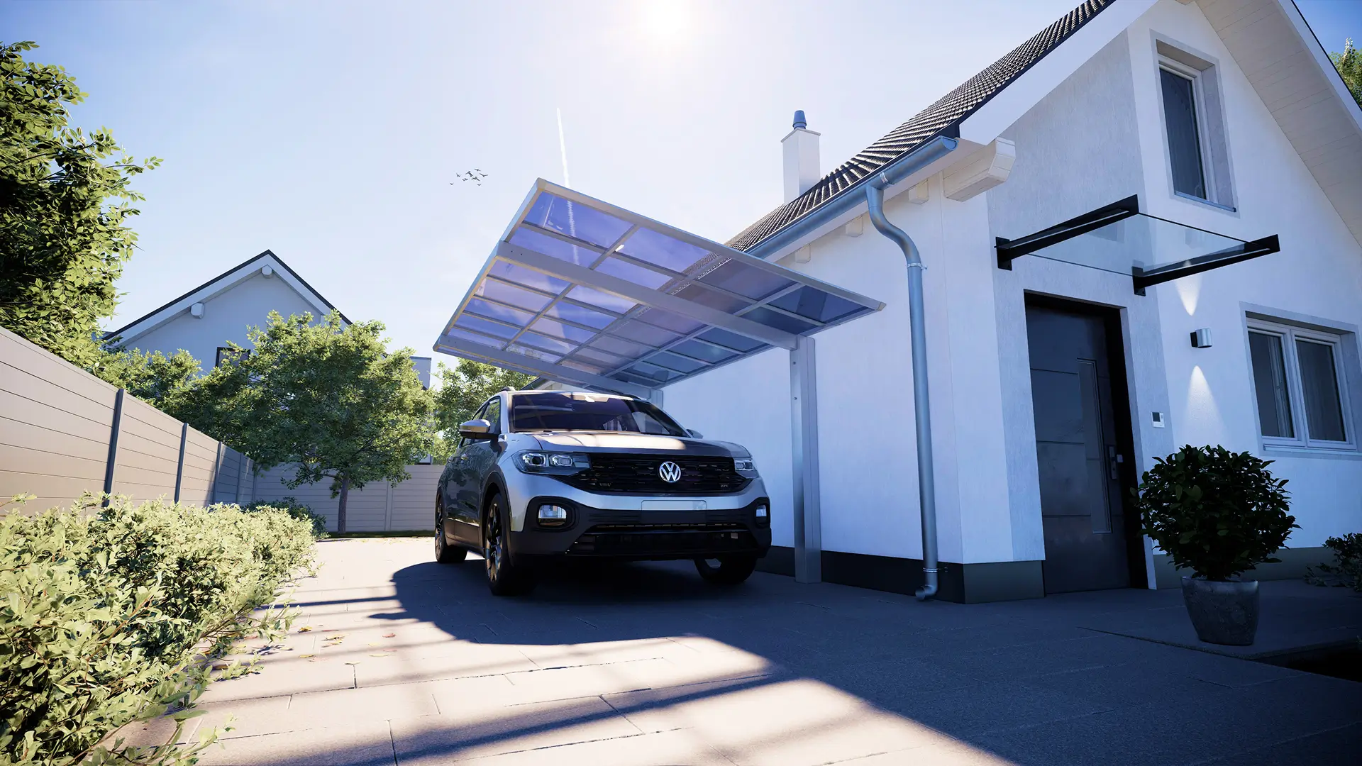 Protecție optimă pentru tine și mașina ta. Un KD Carport Alpha te ferește de ploaie și intemperii, cu opțiune de montaj independent sau pe perete.