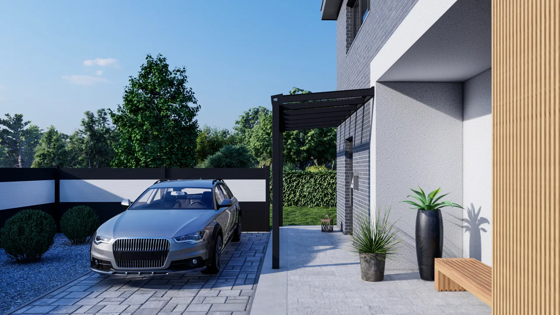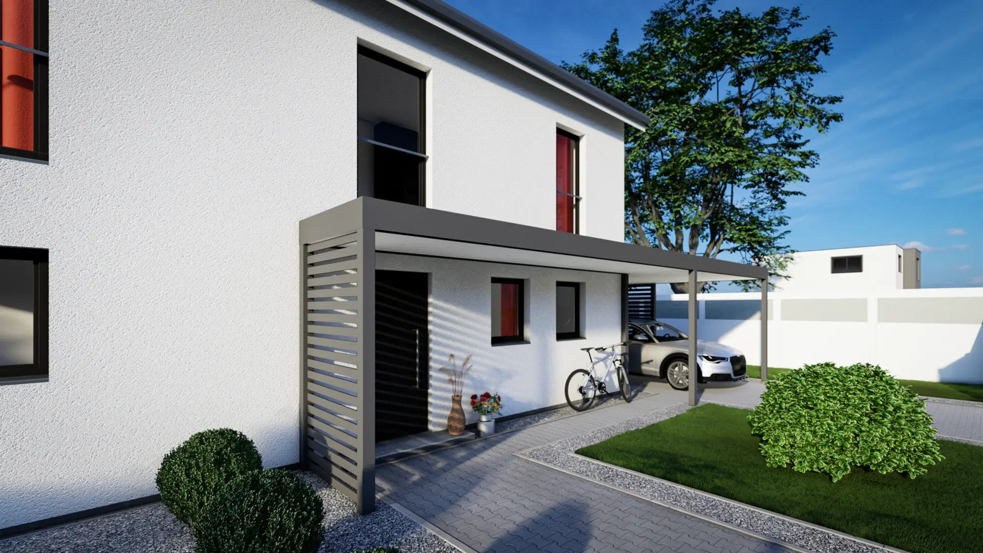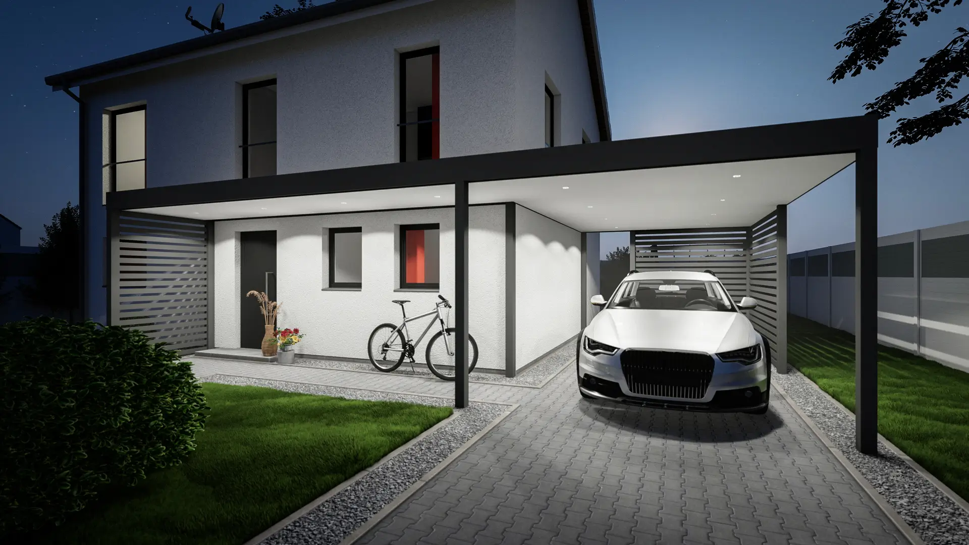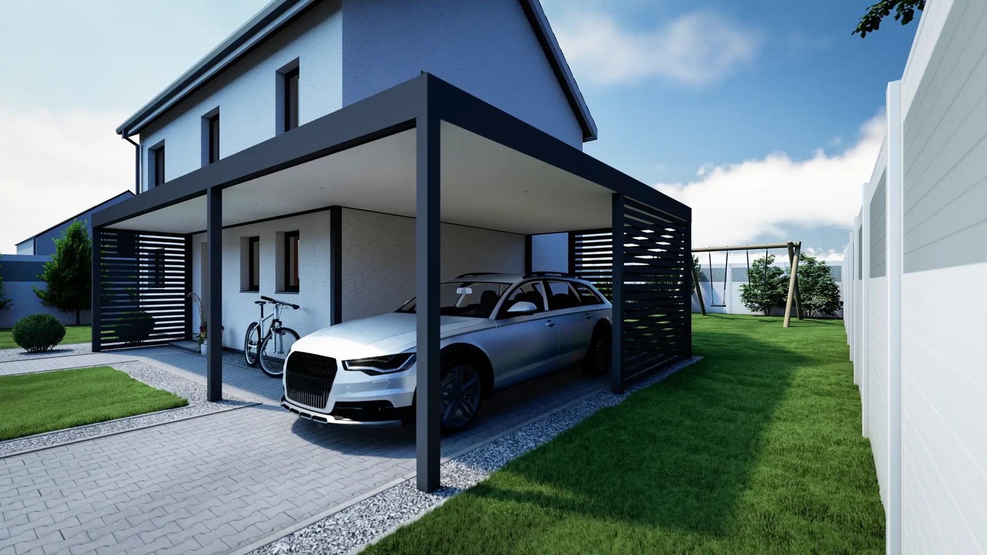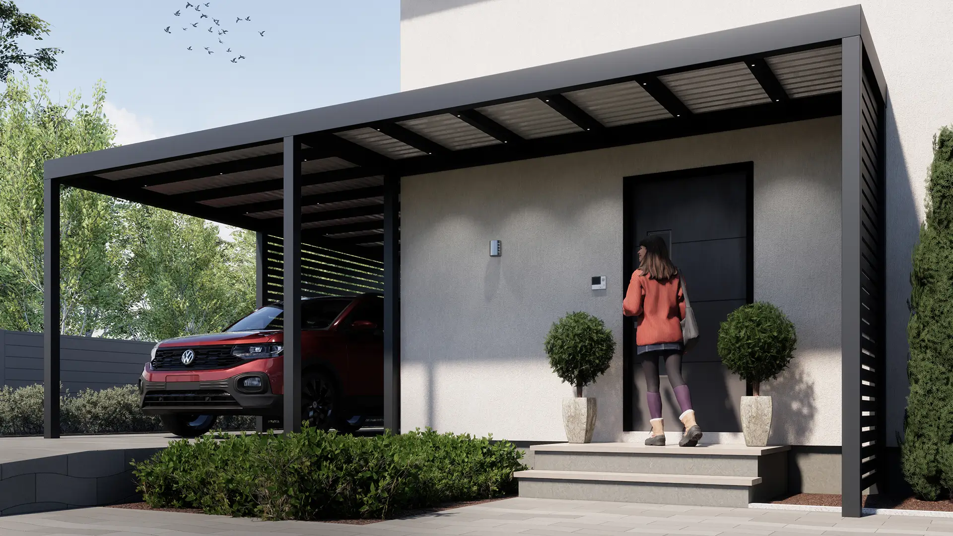 Carporturile noastre pot fi integrate cu o copertină de intrare elegantă și personalizată, oferind protecție optimă și un hol armonios, care te întâmpină cu plăcere de fiecare dată.