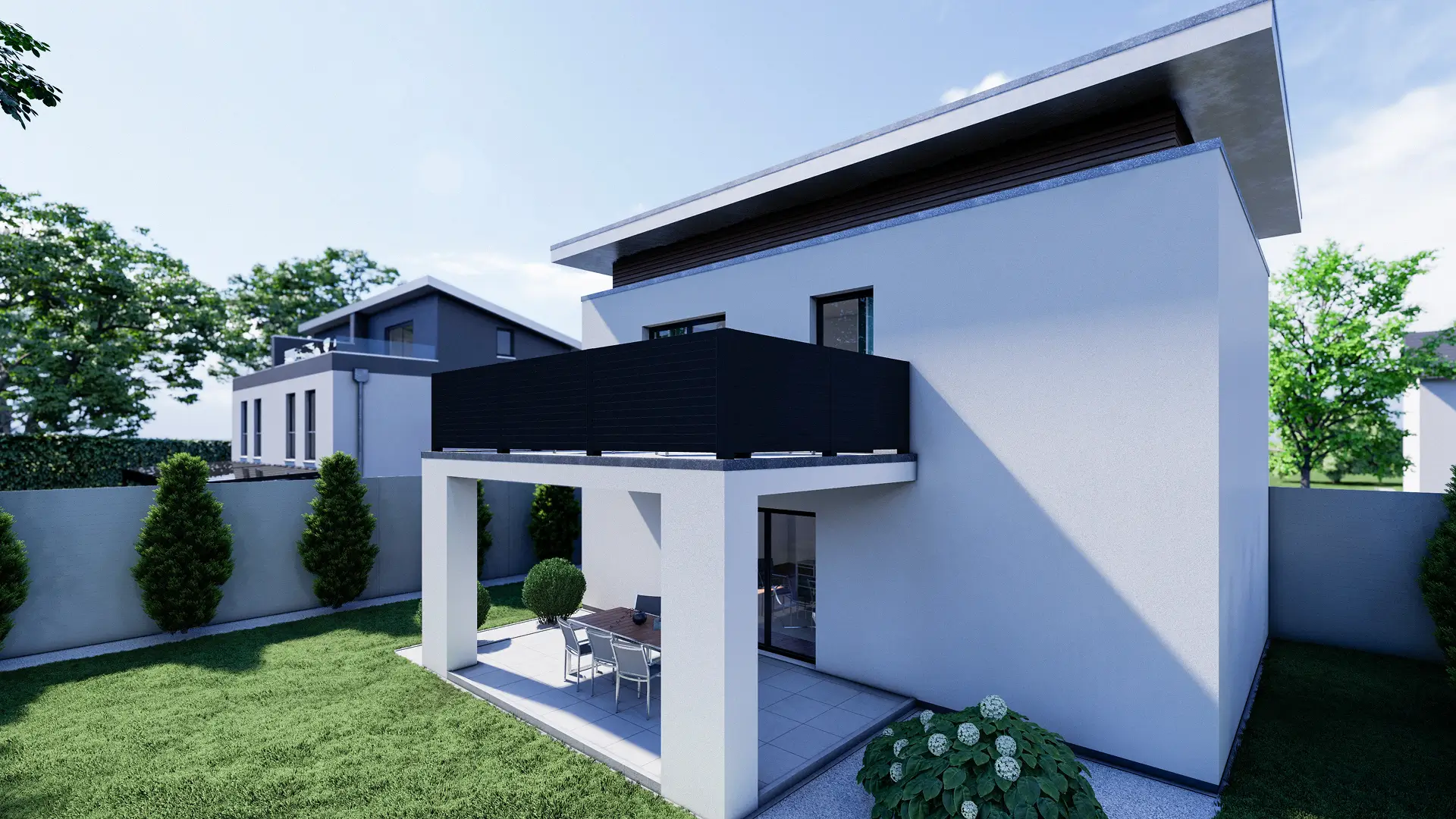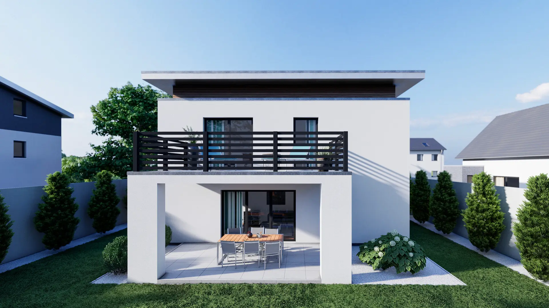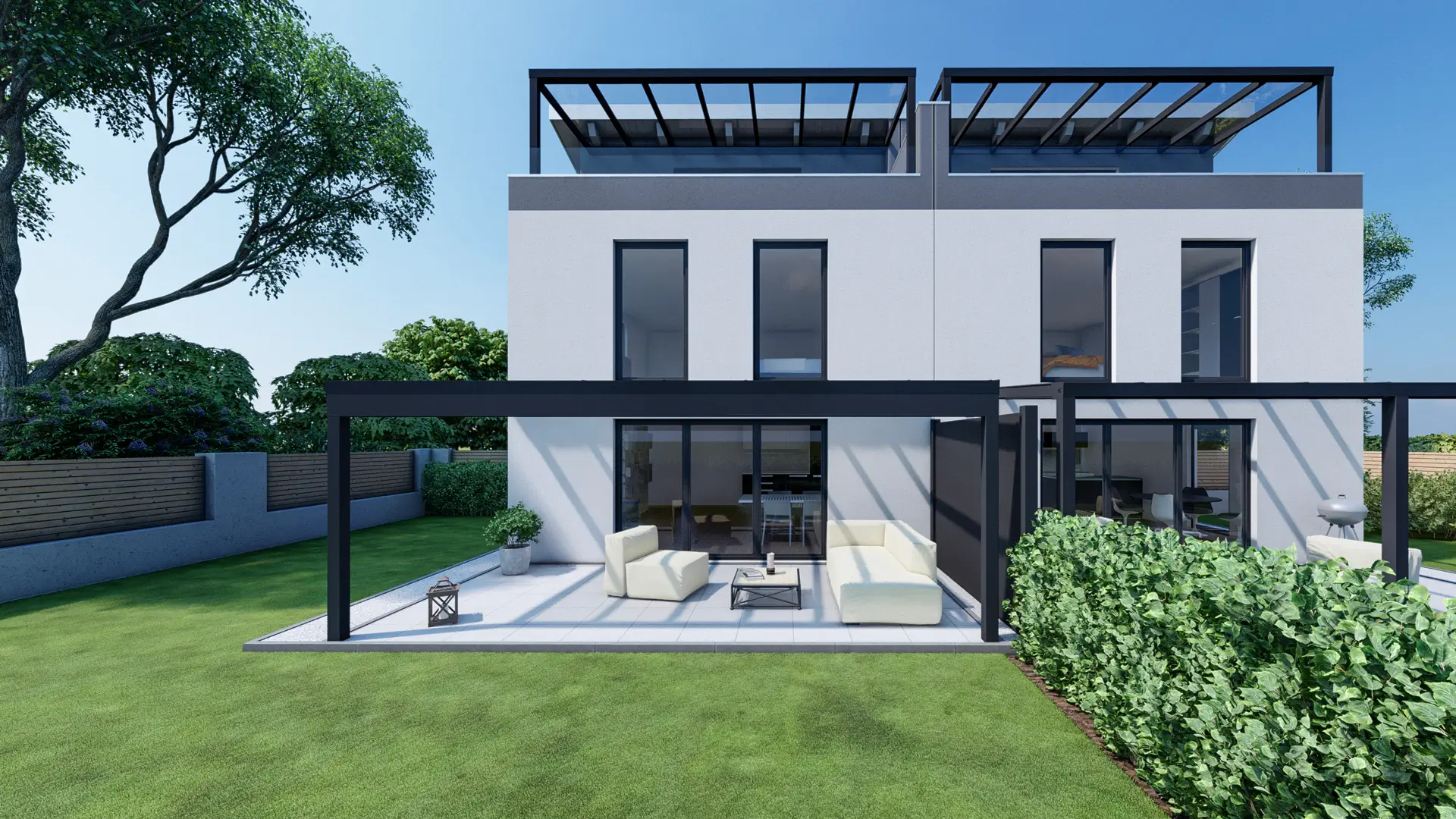 Design cubic elegant și multiple opțiuni de personalizare: acoperișuri, elemente laterale, LED-uri, posibilitate de acoperiș verde. Un acoperiș plat robust și estetic, la un preț corect, creat pentru stil și funcționalitate.