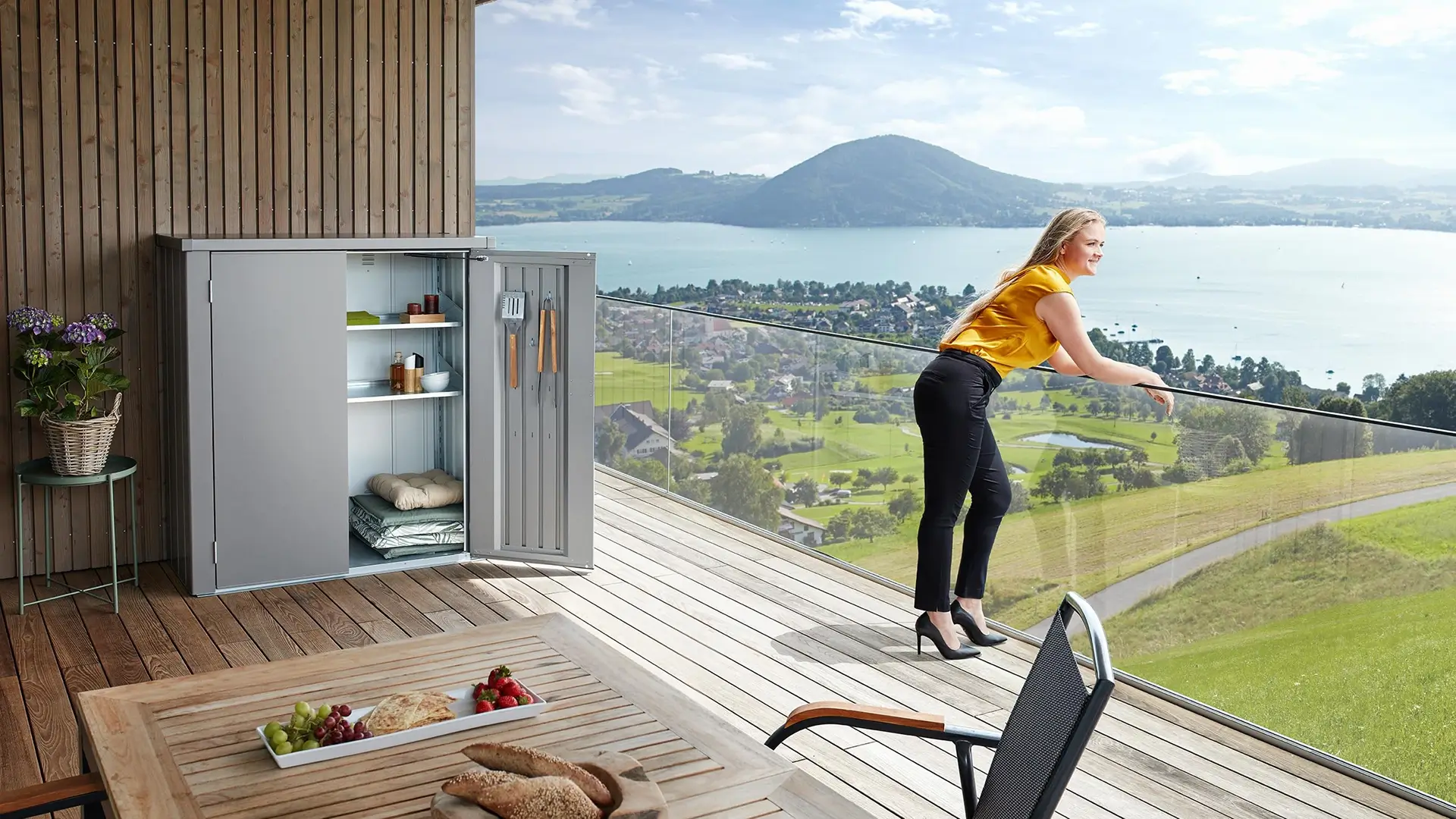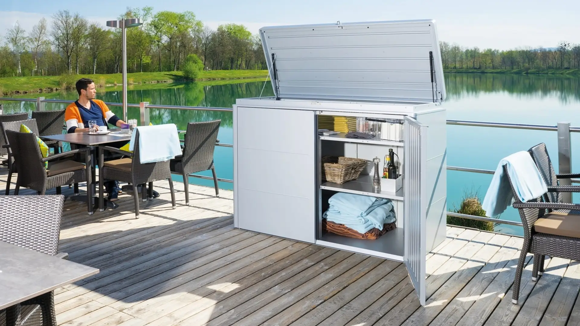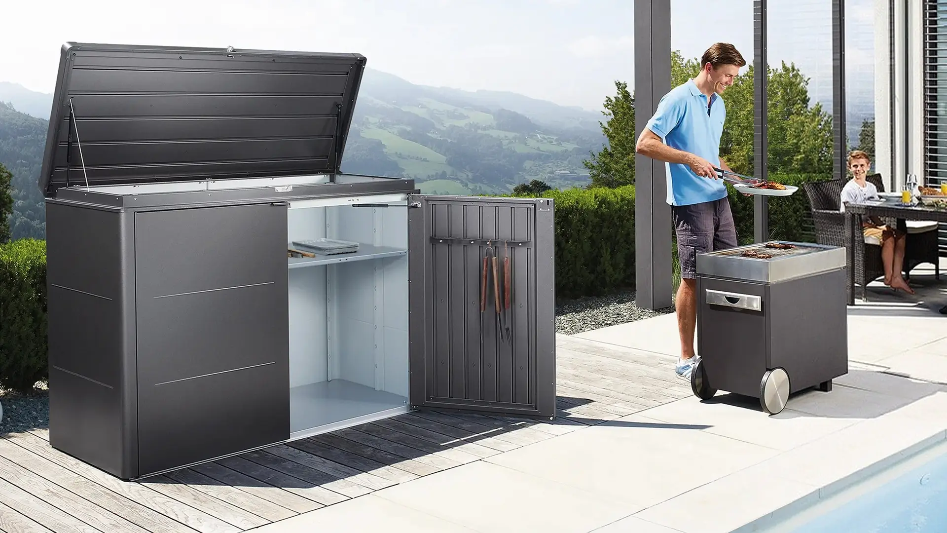 HighBoard este mai mult decât un simplu dulap pentru grădină: un mobilier multifuncțional care păstrează totul curat și protejat de intemperii.