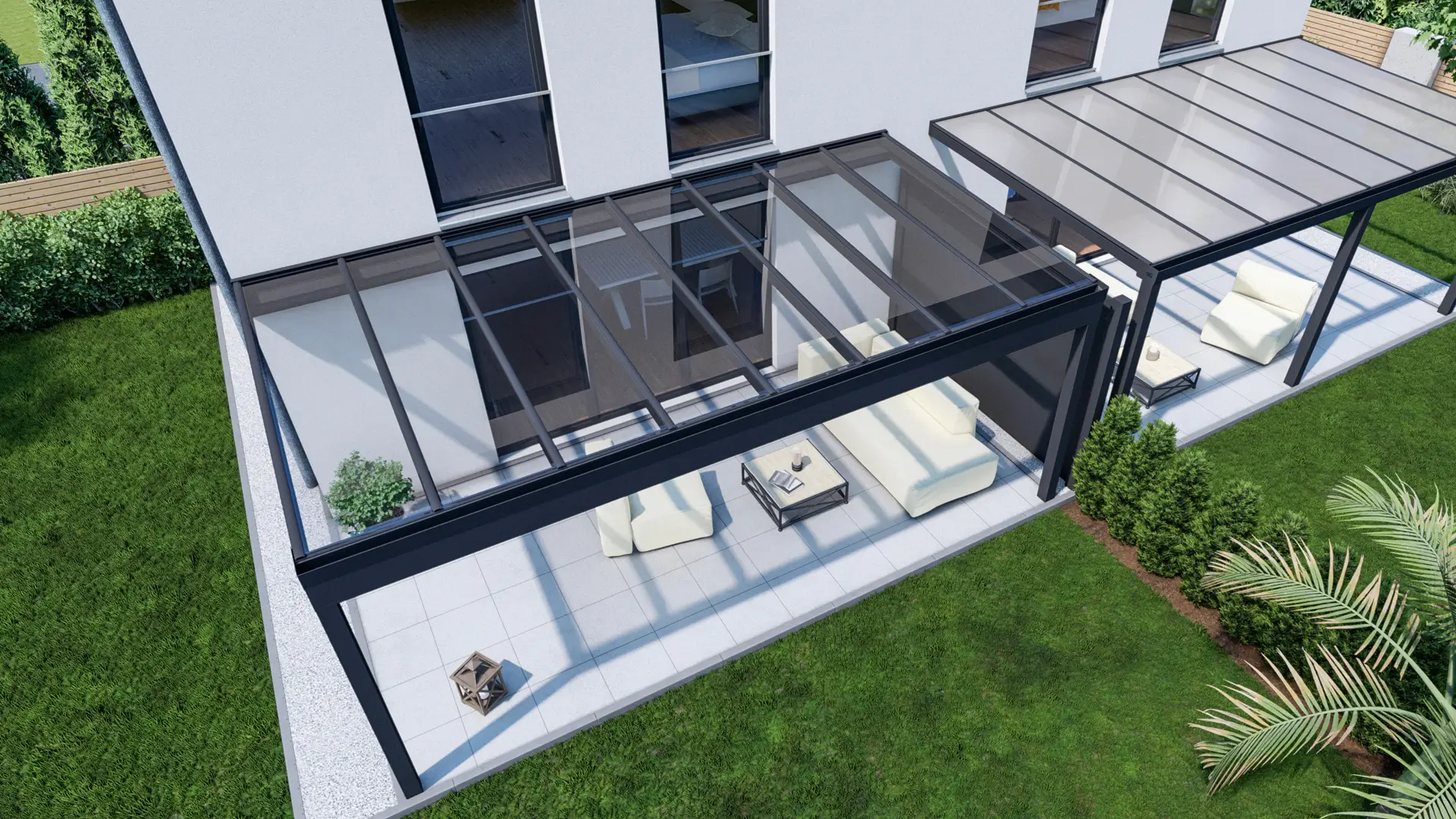 Structura sa din aluminiu vopsit în câmp electrostatic, opțiunile de acoperire – sticlă clară, sticlă mată sau policarbonat – și paleta variată de culori RAL asigură o soluție personalizată și estetică. Poți integra și markize, panouri laterale sau iluminat LED pentru un plus de funcționalitate și confort.